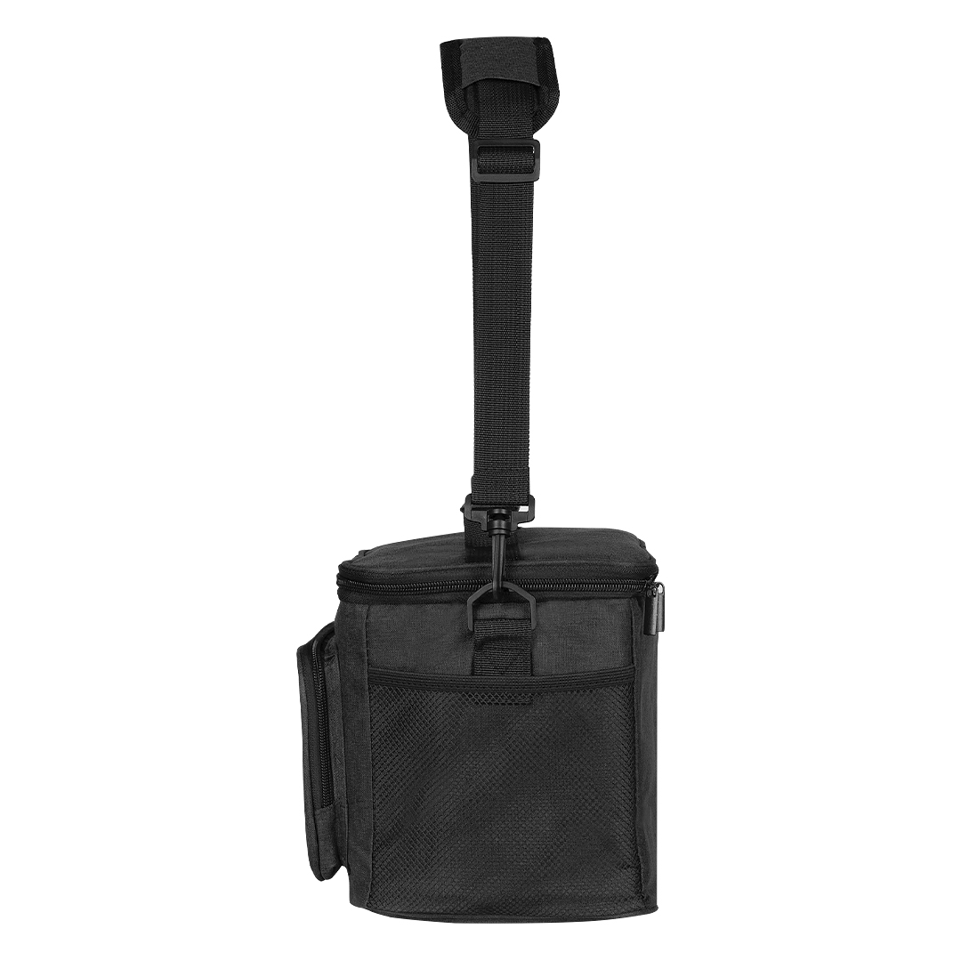 Unutrašnjost kombinuje PEVA oblogu i aluminijumsku izolacionu penu, čime se postiže bolje zadržavanje hladnoće uz korišćenje rashladnih uložaka. Torba ima glavni termo odeljak sa rajsferšlusom, prednji džep sa rajsferšlusom i dva bočna mrežasta džepa za dodatnu opremu. Dugački podesivi kaiš omogućava praktično nošenje preko ramena, dok kapacitet od 6 limenki (0,5 l) čini ovaj model idealnim za dnevne aktivnosti, događaje i brendiranje.